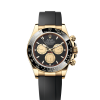 The Oyster Perpetual Cosmograph Daytona in 18 ct yellow gold with a black dial and contrasting counter rings. It features an Oysterflex bracelet and a black Cerachrom bezel with tachymetric scale.
