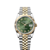 This dial features diamonds in 18 ct gold settings. The sunray finish creates delicate light reflections on many dials in the Oyster Perpetual collection. It is obtained using masterful brushing techniques that create grooves running outwards from the centre of the dial.