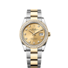 This dial features a large VI set with 11 diamonds. The sunray finish creates delicate light reflections on many dials in the Oyster Perpetual collection. It is obtained using masterful brushing techniques that create grooves running outwards from the centre of the dial.