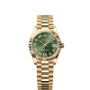 This dial features diamonds in 18 ct gold settings. The sunray finish creates delicate light reflections on many dials in the Oyster Perpetual collection. It is obtained using masterful brushing techniques that create grooves running outwards from the centre of the dial.
