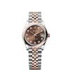 This Oyster Perpetual Datejust 31 in Oystersteel and Everose gold features a chocolate, diamond-set dial and a Jubilee bracelet.