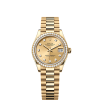 It was therefore identical to the fluting on the case back, which was also screwed onto the case for waterproofness, using specific Rolex tools. Over time, the fluting became an aesthetic element, a genuine Rolex signature feature. Today the fluted bezel is a mark of distinction, in gold on this Datejust 31.