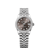 This Oyster Perpetual Datejust 31 in Oystersteel and white gold features a bright black dial and an Oyster bracelet.