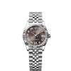 This Oyster Perpetual Datejust 31 in Oystersteel and yellow gold features a dark grey, diamond-set dial and an Oyster bracelet.