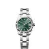 This Oyster Perpetual Datejust 31 in Oystersteel and yellow gold features an olive-green, diamond-set dial and an Oyster bracelet.