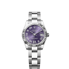 This dial features diamonds in 18 ct gold settings. The sunray finish creates delicate light reflections on many dials in the Oyster Perpetual collection. It is obtained using masterful brushing techniques that create grooves running outwards from the centre of the dial.