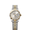 This Oyster Perpetual Datejust 36 in Oystersteel and yellow gold features a silver, diamond-set dial and an Oyster bracelet.