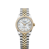 This Oyster Perpetual Datejust 36 in Oystersteel and white gold features a white dial and an Oyster bracelet.