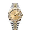 36mm yellow Rolesor case comprised of Oystersteel and yellow gold, screw-down back, screw-down crown with twinlock double waterproofness system, fluted bezel, scratch-resistant sapphire crystal with cyclops lens over the date, slate dial, green Roman numerals, Rolex calibre 3235 perpetual self-winding movement with centre hour, minute and seconds hands, instantaneous date with rapid setting, and stop-seconds for precise time setting, approximately 70 hours of power reserve, Jubilee bracelet with five-piece links, folding Oysterclasp buckle with Easylink 5mm comfort extension link. Waterproof to 100 metres / 330 feet.