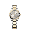 This dial features diamonds in 18 ct gold settings. The sunray finish creates delicate light reflections on many dials in the Oyster Perpetual collection. It is obtained using masterful brushing techniques that create grooves running outwards from the centre of the dial.