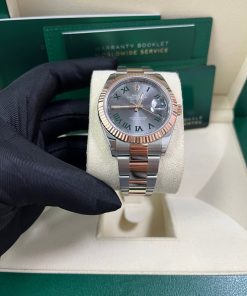 Steel and Everose Rolesor Datejust 41 Watch – Fluted Bezel – Slate Gray Green Roman Dial – Oyster Bracelet