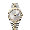 This Oyster Perpetual Datejust 41 in Oystersteel and yellow gold features a white dial and an Oyster bracelet.