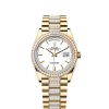 It was therefore identical to the fluting on the case back, which was also screwed onto the case for waterproofness, using specific Rolex tools. Over time, the fluting became an aesthetic element, a genuine Rolex signature feature. Today the fluted bezel is a mark of distinction, in gold on this Day-Date 36.
