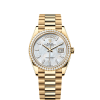 It was therefore identical to the fluting on the case back, which was also screwed onto the case for waterproofness, using specific Rolex tools. Over time, the fluting became an aesthetic element, a genuine Rolex signature feature. Today the fluted bezel is a mark of distinction, in gold on this Day-Date 36.