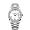 The Oyster Perpetual Day-Date 36 in 18 ct Everose gold, with a silver, diamond-set dial, diamond-set bezel and a President bracelet.