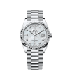 The Oyster Perpetual Day-Date 36 in 18 ct white gold, with a white mother-of-pearl, diamond-set dial, diamond-set bezel and a diamond-set President bracelet.