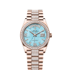 The Oyster Perpetual Day-Date 36 in 18 ct white gold with a blue ombré dial, diamond-set bezel and a President bracelet.