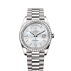 The Oyster Perpetual Day-Date 36 in 18 ct yellow gold, with a diamond-paved dial, diamond-set bezel and a President bracelet.