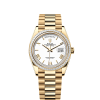 It was therefore identical to the fluting on the case back, which was also screwed onto the case for waterproofness, using specific Rolex tools. Over time, the fluting became an aesthetic element, a genuine Rolex signature feature. Today the fluted bezel is a mark of distinction, in gold on this Day-Date 40.