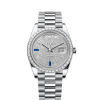 This dial features 10 baguette-cut diamonds. Diamonds, sapphires, rubies, emeralds – the noblest and most precious stones are selected to grace Rolex timepieces. The brand has in-house expertise and equipment enabling it to bejewel any model in its catalogue.