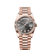 The Oyster Perpetual Day-Date 40 in 18 ct Everose gold with a chocolate dial, diamond-set bezel and a President bracelet.
