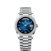 The Oyster Perpetual Day-Date 40 in platinum with a white dial, fluted bezel and a President bracelet.