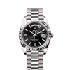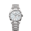 The Oyster Perpetual Day-Date 40 in 18 ct white gold with a silver, diamond-set dial, fluted bezel and a President bracelet.
