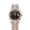 It was therefore identical to the fluting on the case back, which was also screwed onto the case for waterproofness, using specific Rolex tools. Over time, the fluting became an aesthetic element, a genuine Rolex signature feature. Today the fluted bezel is a mark of distinction, in gold on this Day-Date 40.