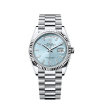 The Oyster Perpetual Day-Date 40 in 18 ct white gold with a blue ombré dial, diamond-set bezel and a President bracelet.