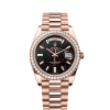 The Oyster Perpetual Day-Date 40 in 18 ct yellow gold with a bright black dial, fluted bezel and a President bracelet.