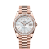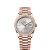 The Oyster Perpetual Day-Date 40 in 18 ct yellow gold with a silver dial, diamond-set bezel and a President bracelet.