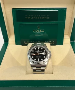 The Explorer II features a date display, an additional orange 24-hour hand and a fixed bezel with 24-hour graduations, enabling day to be distinguished from night.