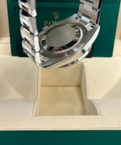 The Oyster bracelet is a perfect alchemy of form and function, aesthetics and technology, designed to be both robust and comfortable. It is equipped with an Oysterlock folding clasp, which prevents accidental opening and the Easylink comfort extension link, also exclusive to Rolex.