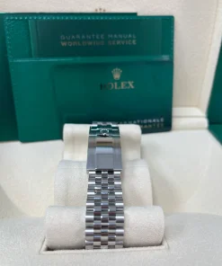 The Jubilee bracelet on this model is equipped with a Rolex-designed, patented Oysterlock folding safety clasp, which prevents accidental opening. It also features the Easylink comfort extension link, developed by the brand, which allows the bracelet length to be increased by approximately 5 mm. A concealed attachment system ensures seamless visual continuity between the bracelet and case.