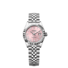 This Oyster Perpetual Lady-Datejust in 18 ct Everose gold features a chocolate, diamond-set dial and a Jubilee bracelet.