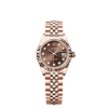 This Oyster Perpetual Lady-Datejust in 18 ct Everose gold features a chocolate dial and a Jubilee bracelet.