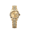 This dial features diamonds in 18 ct gold settings. The sunray finish creates delicate light reflections on many dials in the Oyster Perpetual collection. It is obtained using masterful brushing techniques that create grooves running outwards from the centre of the dial.
