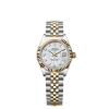 This Lady-Datejust is offered on a prestigious President bracelet. Always in solid gold or platinum, the bracelets benefit from a concealed attachment beneath the bezel which ensures seamless visual continuity between the bracelet and case.