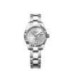 This Oyster Perpetual Lady-Datejust in Oystersteel and yellow gold features a silver, diamond-set dial and an Oyster bracelet.