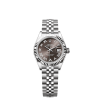 This Oyster Perpetual Lady-Datejust in Oystersteel and Everose gold features a chocolate dial and a Jubilee bracelet.
