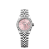 This Oyster Perpetual Lady-Datejust in Oystersteel and white gold features a pink, diamond-set dial and an Oyster bracelet.