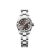 This Oyster Perpetual Lady-Datejust in Oystersteel and white gold features a white mother-of-pearl, diamond-set dial and an Oyster bracelet.