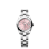 This dial features diamonds in 18 ct gold settings. The sunray finish creates delicate light reflections on many dials in the Oyster Perpetual collection. It is obtained using masterful brushing techniques that create grooves running outwards from the centre of the dial.