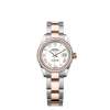 This Oyster Perpetual Lady-Datejust in Oystersteel and yellow gold features a silver, diamond-set dial and an Oyster bracelet.