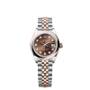 This dial features diamonds in 18 ct gold settings. The sunray finish creates delicate light reflections on many dials in the Oyster Perpetual collection. It is obtained using masterful brushing techniques that create grooves running outwards from the centre of the dial.