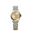 This Oyster Perpetual Lady-Datejust in 18 ct yellow gold features a silver, diamond-set dial and a Jubilee bracelet.