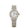 This Oyster Perpetual Lady-Datejust in 18 ct yellow gold features a white dial and a Jubilee bracelet.