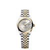 This Oyster Perpetual Lady-Datejust in 18 ct yellow gold features a silver, diamond-set dial and a Jubilee bracelet.
