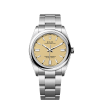 The Oyster Perpetual 36 with a black dial and an Oyster bracelet.