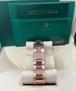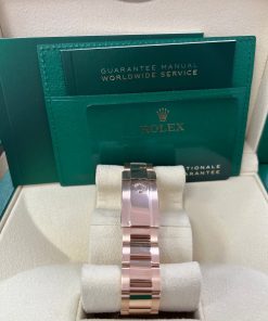 42mm 18K Everose gold case, screw-down back, screw-down crown, fluted bezel with bidirectional rotatable Rolex Ring Command, scratch-resistant sapphire crystal with cyclops lens over the date and double anti-reflective coating, dark rhodium dial, index hour markers with Chromalight, Rolex caliber 9001 automatic movements, second time-zone displayed via off-center rotating disc, Saros annual calendar with a date at 3 o’clock and month indicated in discrete apertures at each of the 12-hour marks. Oyster bracelet with flat three-piece links, folding Oyster-Clasp buckle. Water-resistant up to 100 meters. 2020.